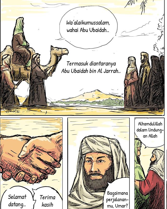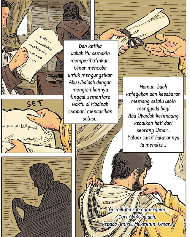 Lihatlah Abu Ubaidah, bagaimana ia memberi kita contoh dalam menghadapi kondisi sesulit apapun. Ia membuktikan pada kita bahwa keteguhan & kesabaran itu bagaikan sebuah emas dalam diri seseorang. Jika kalian menemukannya, maka jangan pernah menukarnya dengan apapun.~