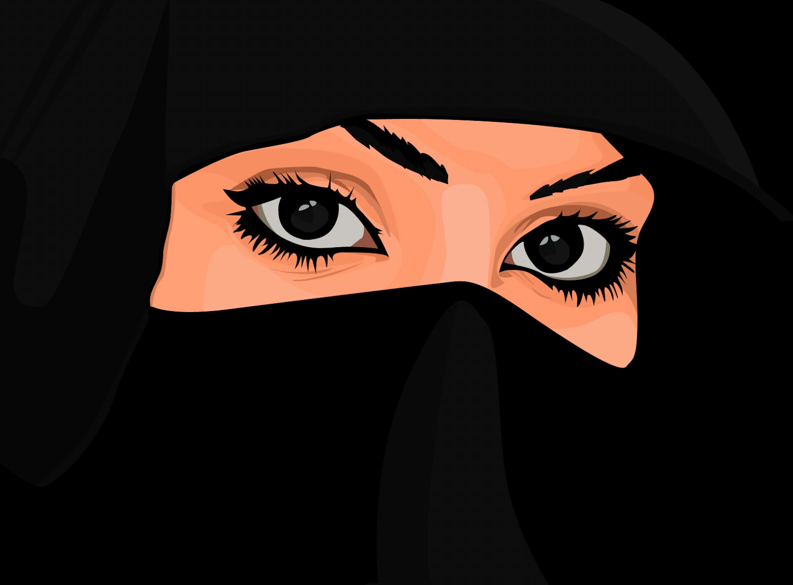 Di sini beliau menyebutkan bahwa wanita berniqab itu terlihat matanya, menunjukkan bahwa boleh memperlihatkan mata.