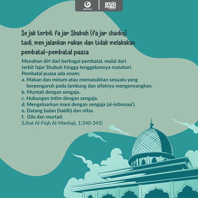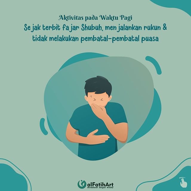 Aktivitas pada Waktu Pagi: Sejak terbit fajar Shubuh (fajar shadiq) tadi menjalankan rukun dan tidak melakukan pembatal-pembatal puasa
