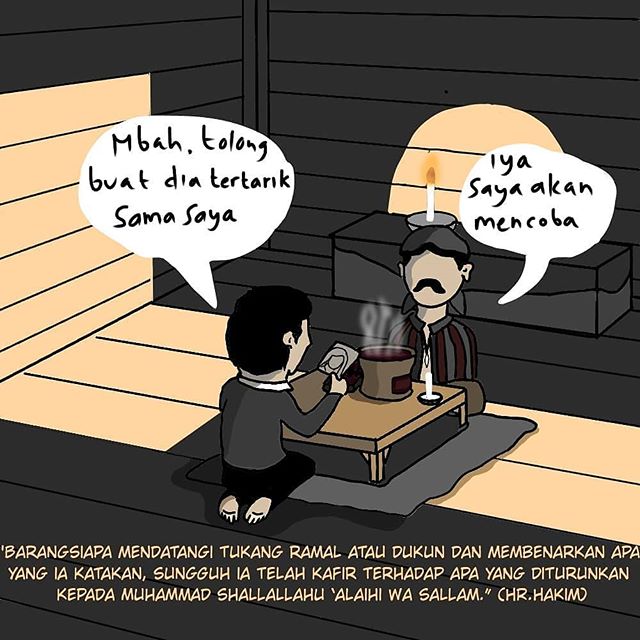 “Barangsiapa mendatangi tukang ramal atau dukun dan membenarkan apa yang ia katakan, sungguh ia telah kafir terhadap apa yang diturunkan kepada Muhammad shallallahu ‘alaihi wa sallam.” (HR. Hakim 1/18, Thobroni Al-Kabir 8/403, AlAusath 3/470).