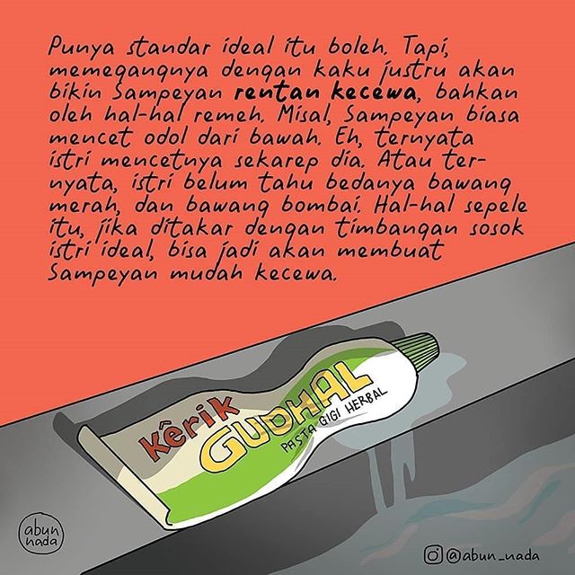 Masalahnya, sebagian suami menghafal isi hadits tentang kewajiban istri, dan istri menghafal hadits tentang nasihat untuk suami. Lalu, keduanya menjadikan hadits ini sebagai amunisi untuk menuntut pasangan dan saling mengkritisi. Dari situlah kemudian setan masuk dan membuat mereka berandai-andai punya pasangan hidup yang serasi.