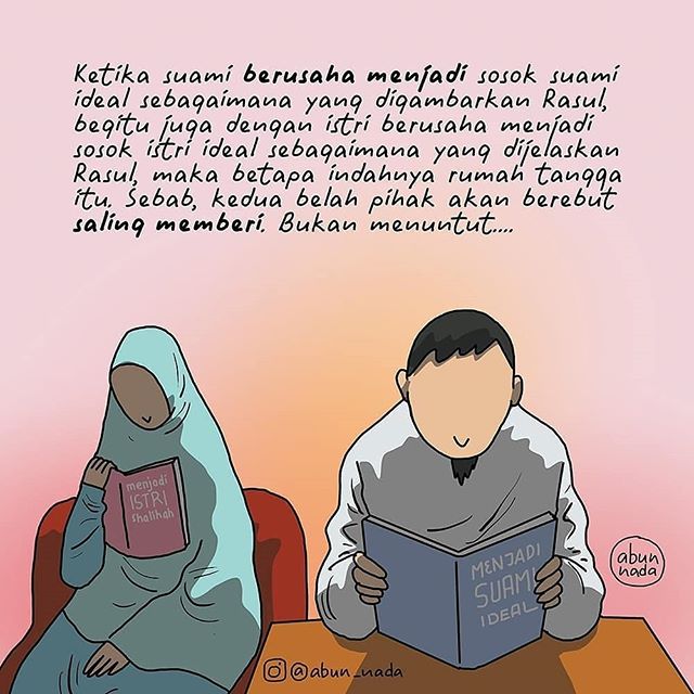 Andai suami istri membaca nasihat Allah dan Rasul-Nya sesuai peran masing-masing, lalu menjadikannya target pribadi yang mesti dicapai, tentu rumah tangganya akan indah sekali. Masing-masing tak sempat menuntut, karena berebut saling memberi. .