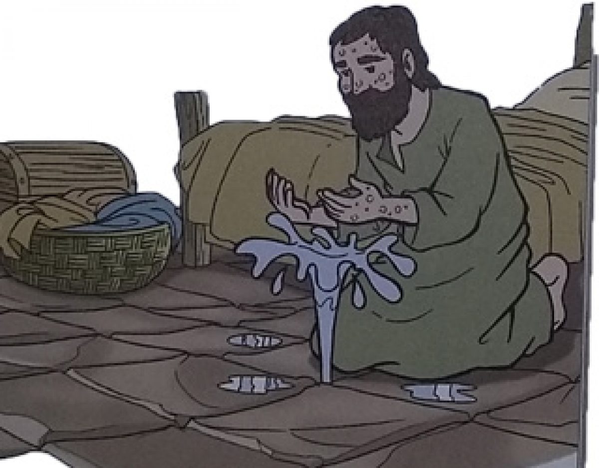 فَنَاوَلْتُهُ ثَوْبًا فَلَمْ يَأْخُذْهُ ، فَانْطَلَقَ وَهْوَ يَنْفُضُ يَدَيْهِ
